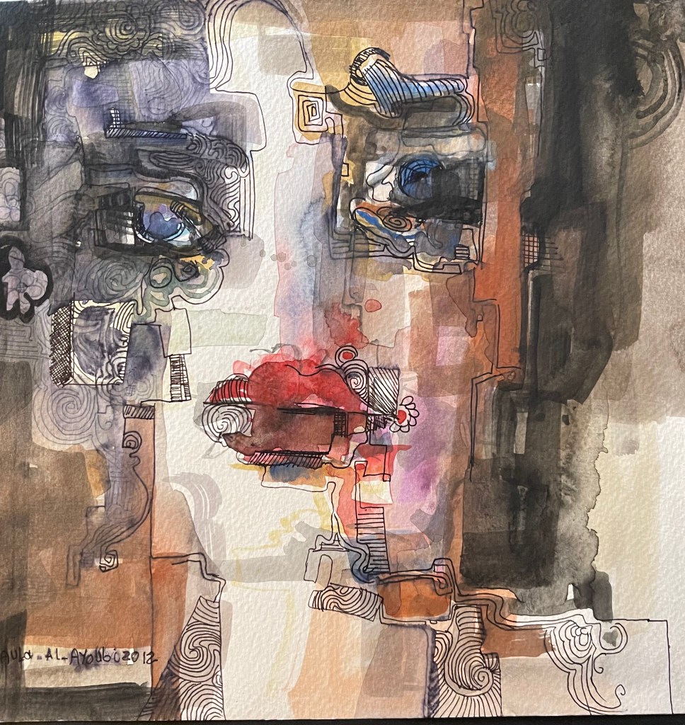 Portrait, Blue Blouse, 11 x 16, Acrylic on Canvas, 2015Bound Dancer #1, 2015, 16 x 20, acrylic on canvasBound Dancer #2, 20 x 16, Acrylic on Canvas, 2015Portrait, Acrylic on Canvas, 2015Portrait, 24 x 24, Acrylic on Canvas, 2015The Game, 2015, 24 x 24, acrylic on canvasThe White Hand, 30 x 40, Acrylic on Canvas, 20122010An early work by Aula Al AyoubiThe Woman Always Wins, Acrylic on canvas, 2015Lady in Black, Acrylic on Paper, 2015Feeling Lost, Watercolor on paper, 2011, 10 x 10 in. Up Close and Personal, Watercolor on Paper, 2012, 10 x 10 in.