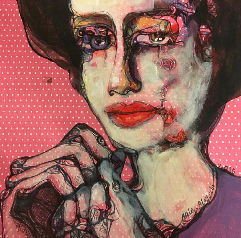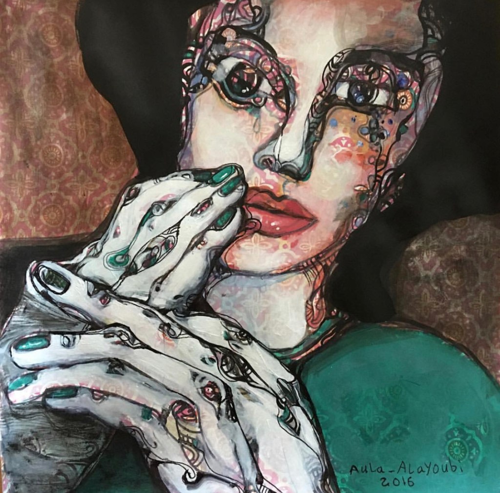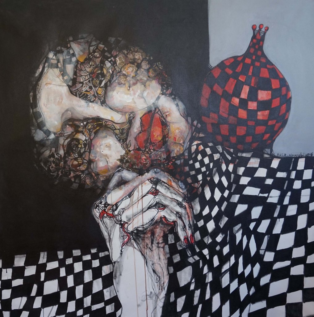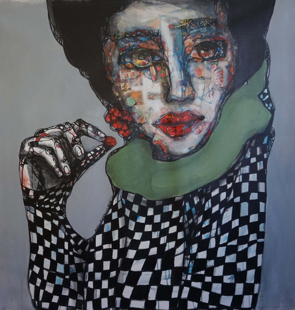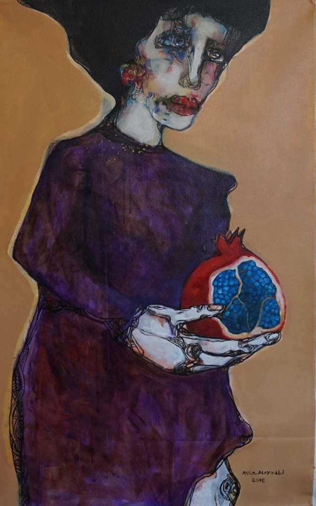 Woman with Pomegranate, 2016Balanced, 51 x 51, 2016, acrylic on canvasLady with Pomegranate, 51 x 50, 2016, acrylic on canvasThree Women from Heaven, 67.5 x 58, 2016, acrylic on canvas Portrait, Checkered Shirt, Small, 14 x 18, 2016, acrylic on canvas20162016201620162016Can we talk?, Acrylic on Paper, 12 x 12 in, 2016